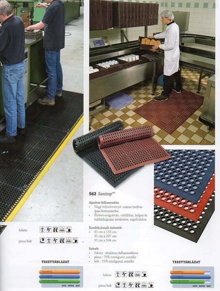 Tartósan csúszásgátló. Fáradtságcsökkentő. Könnyen tisztítható és karbantartható.