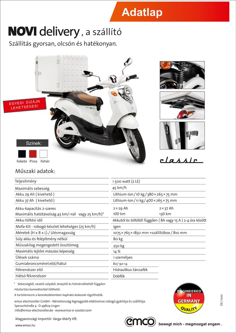áruszállításra pedig az 1 személyes Delivery szállító-boxxal szerelt kivitel.