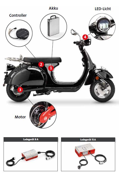a vezérlés, a motor, az akkumulátorok, a töltők.